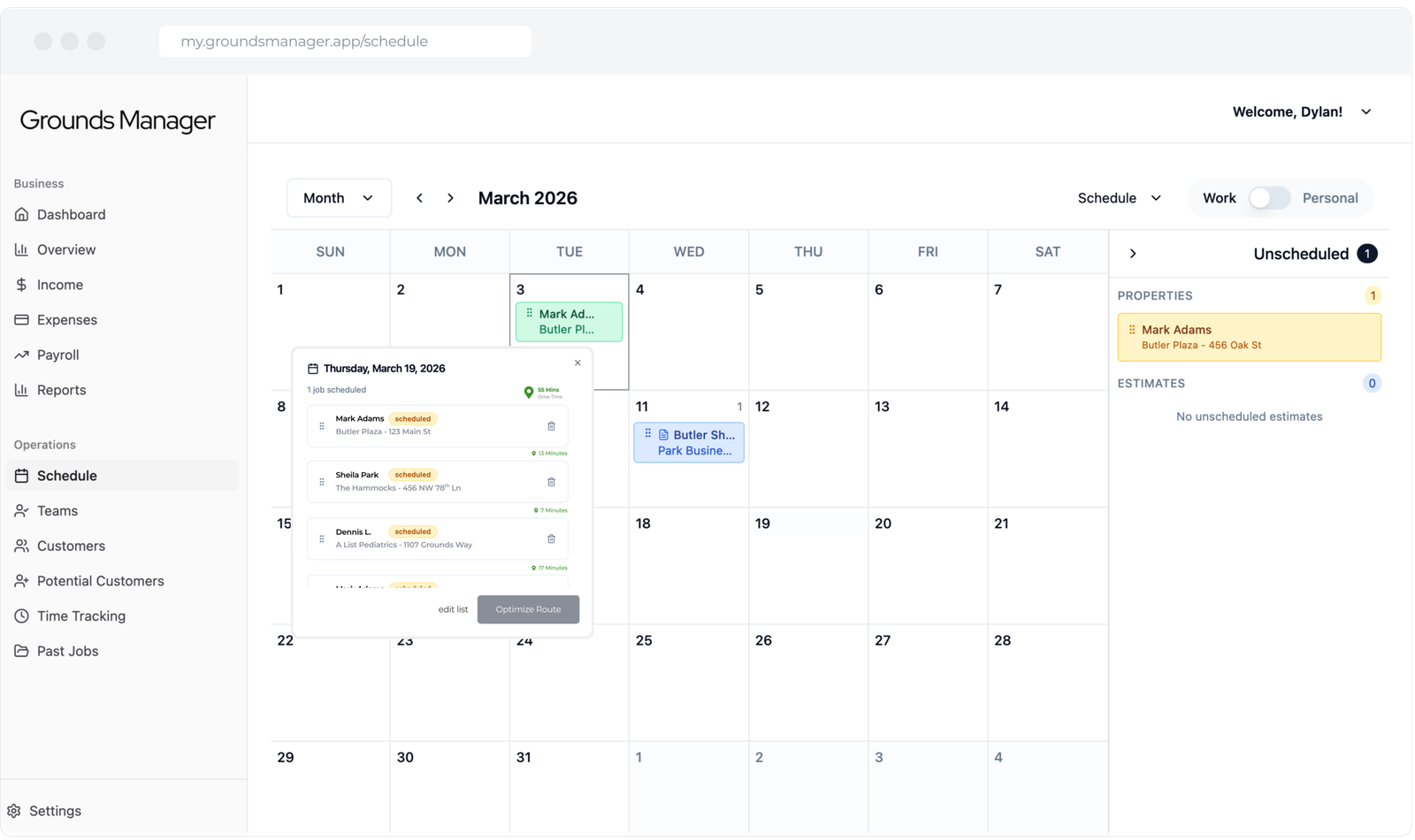 Grounds Manager brings scheduling, crews, jobs, and customers into a single operational layer.